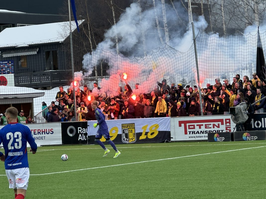Raufoss supporterene møttes lørdag før kampen mellom Raufoss Fotball og Vålerenga.